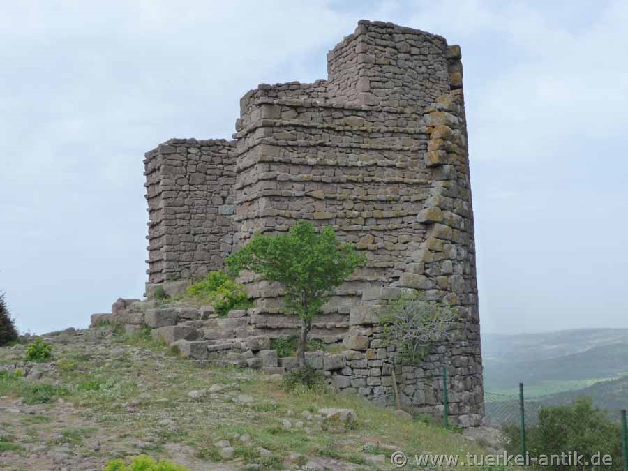The city wall is still very well preserved in its extent of 3 km with towers and gates in large parts. It was built in many construction phases from the 3rd century B.C. to the Byzantine period. Next to it, remains of a probably still archaic city wall are visible. |