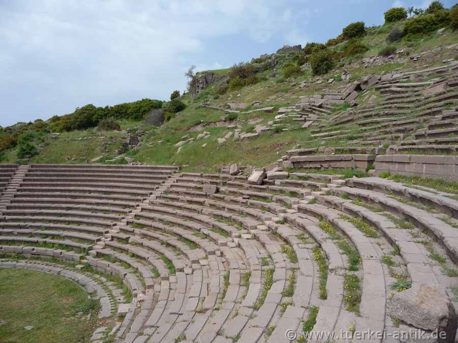 The settlement site, a 234 m high rock of dark trachyte directly at the sea, was already inhabited in the Bronze Age. In the 7th century BC Assos was founded from Methymna on the neighbouring island of Lesbos. The city was a member of the Attisch-Delischer Seebund, but apparently played no role in the Greek-Persian conflicts of the 5th and 4th centuries BC. It was only in the Satrap revolt that it became important, here the rebellious Satrap Ariobarzanes entrenched himself in 366 B.C..