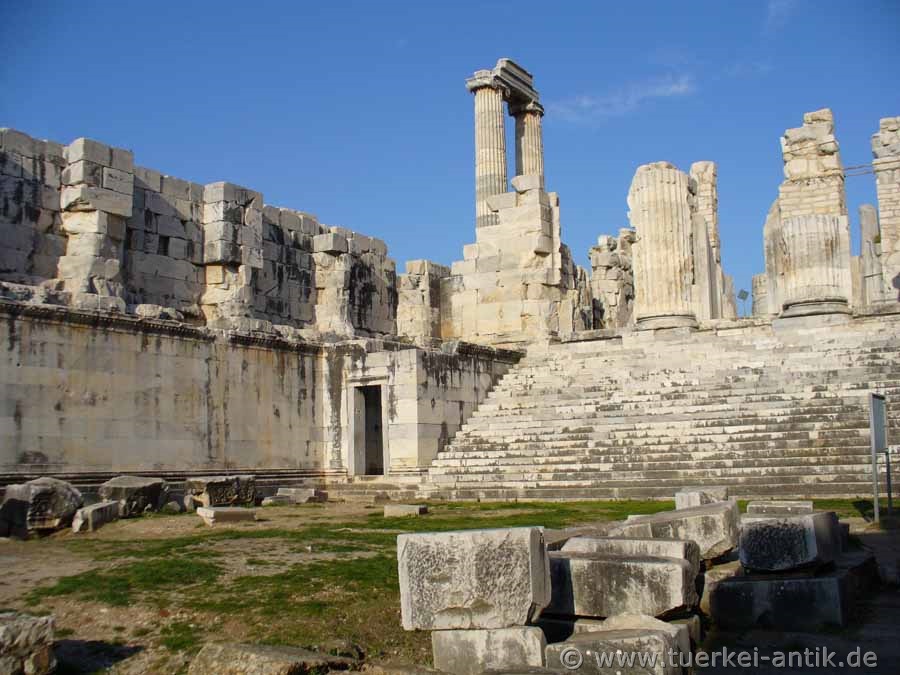 Unlike Miletus or Priene, Didyma was not a city, but a place of worship dedicated to the god Apollo. The temple of Apollo, as an important oracle shrine, was only surpassed in its size by the Artemision in Ephesus and the Heraion in Ionia. Today it is one of the best preserved large buildings of antiquity. |