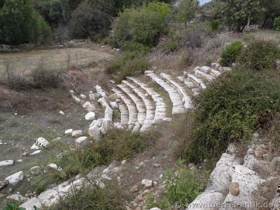 4 km from Vakif, north of the village of Kizilcabölük on the Salbakos (Babadag) lies the former temple district of Herakleia Salbake with the so-called Heroon, a sanctuary for Heracles, Apollon and Artemis. The excavation site is fenced and strictly guarded.