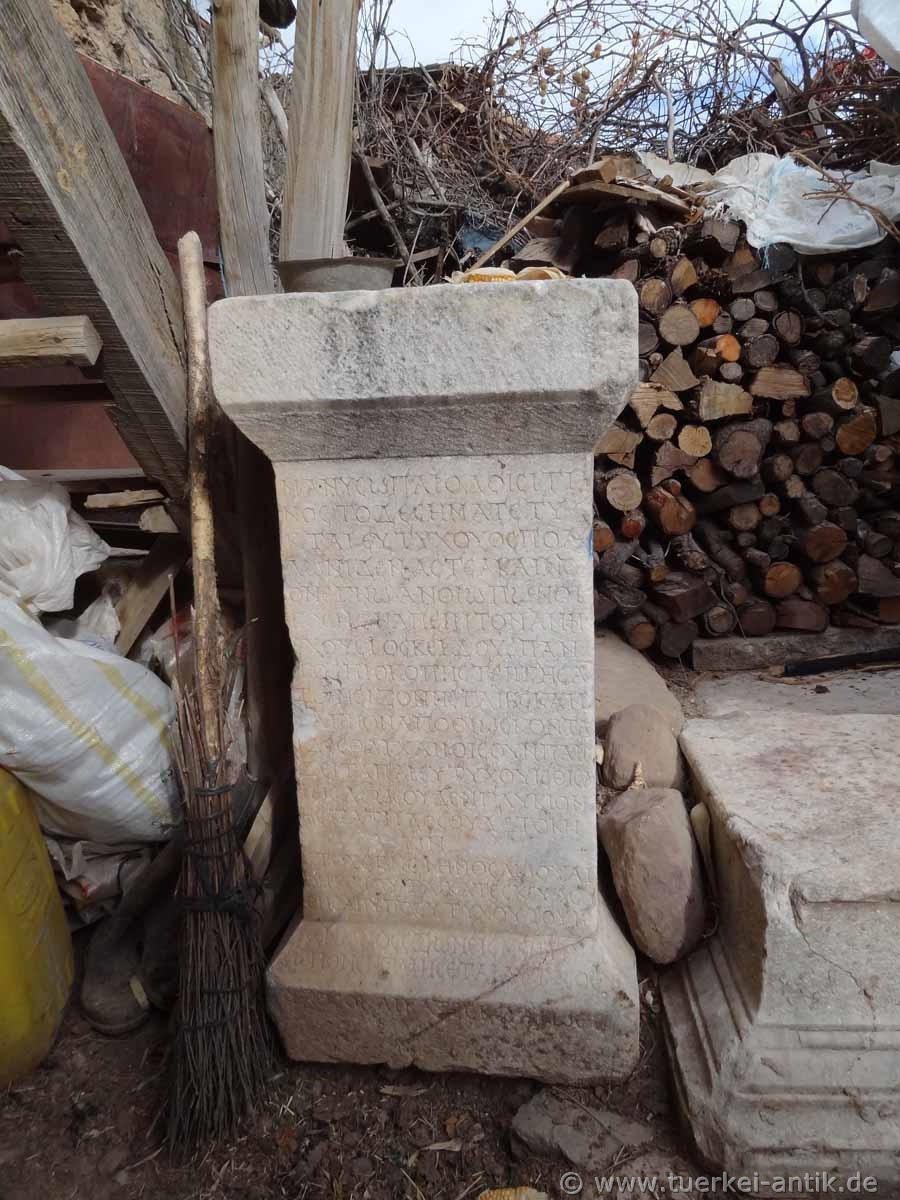 Socle with Greek inscription in a farmer's yard |