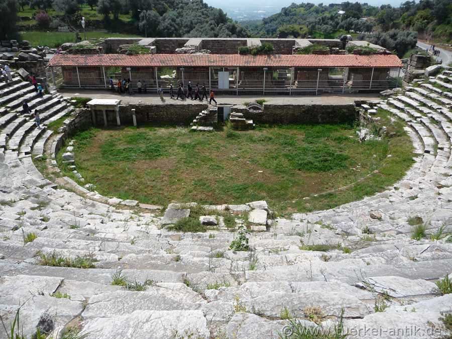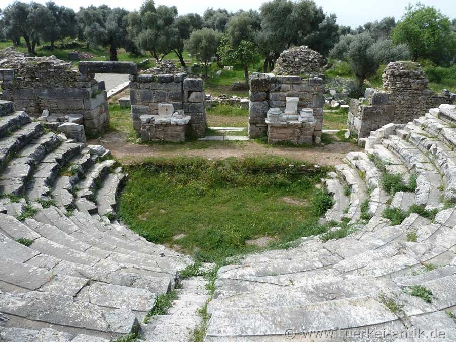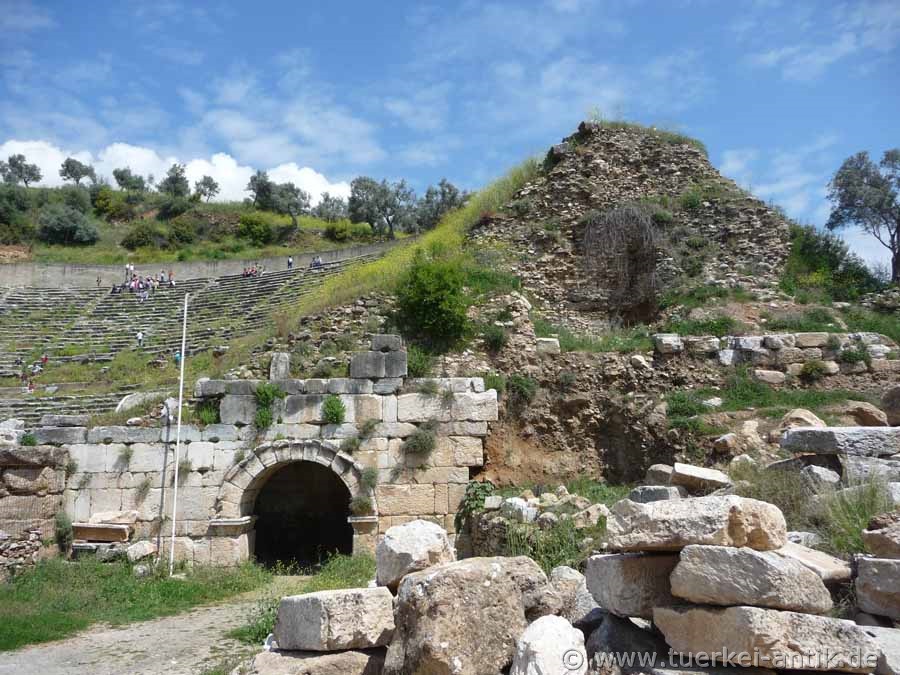The well-preserved ancient theatre was built in the late Hellenistic and early imperial period and was extended in two further construction phases in the 2nd century AD. The scenae frons is decorated with scenes from Dionysos' childhood history. Furthermore, a Buleuterion, a Gymnasion, thermal baths, the Agora and an imperial library building have been preserved. |