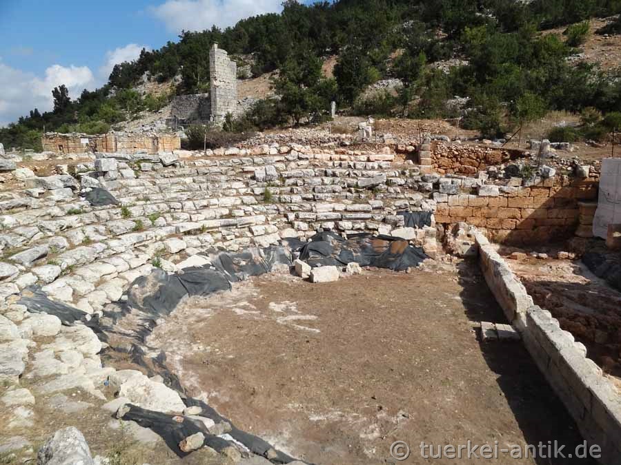 Deren Reich dehnte sich von Claudiopolis (Mut) bis nach Kanytelleis (Kanlıdivane) aus. Auch als das nahe Diokaisareia unter Marcus Antonius Stadt wurde, blieb Oba Sitz der Könige. 39 n. Chr. endete die Priesterdynastie, 72 n. Chr. wurde es in die römische Provinz Cilicia (Kilikien) einverleibt. In byzantinischer Zeit wird Olba der Provinz Isauria, später Pamphilien zugerechnet. |