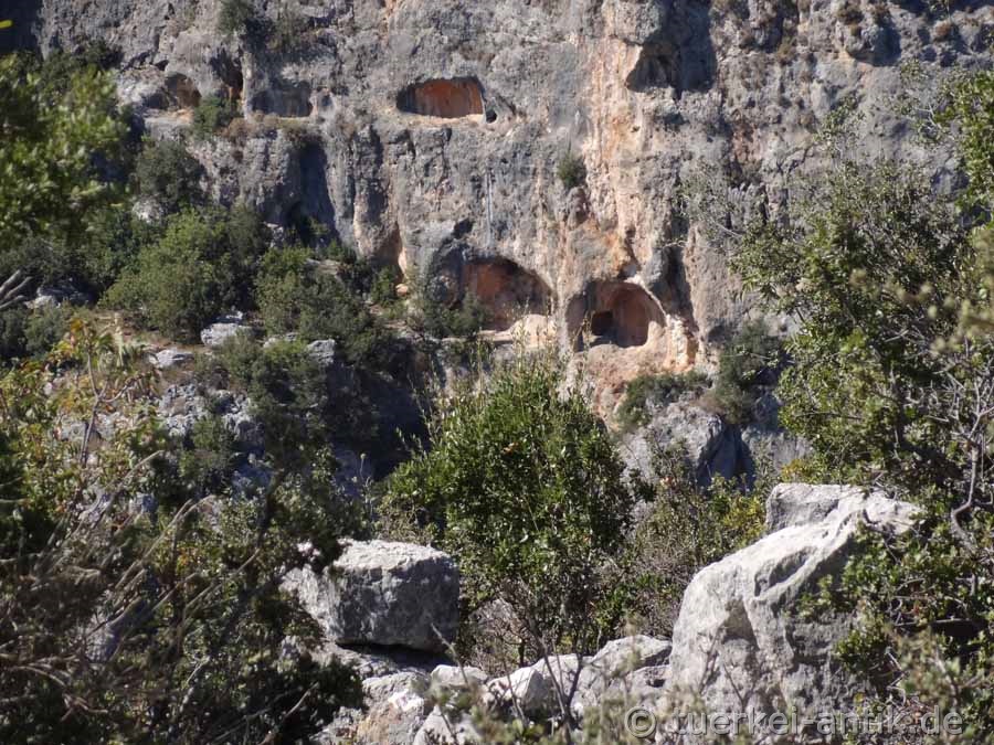 Grabhöhlen auf der gegenüberliegenden Seite des Yenibahçe Deresi |