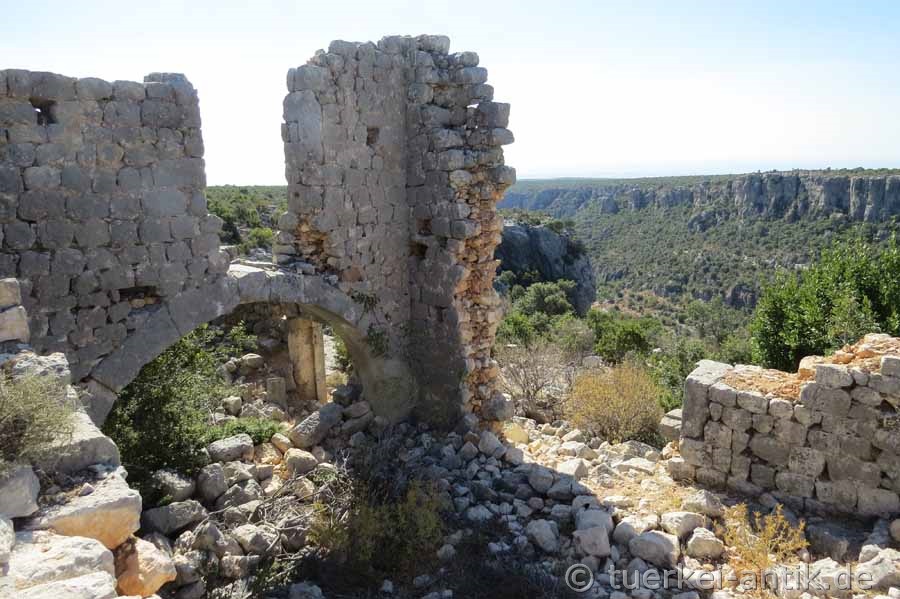 Auf der gegenüberliegenden Seite der Yenibahçe-Schlucht liegt der Ruinenkomplex Barakçıkale. |