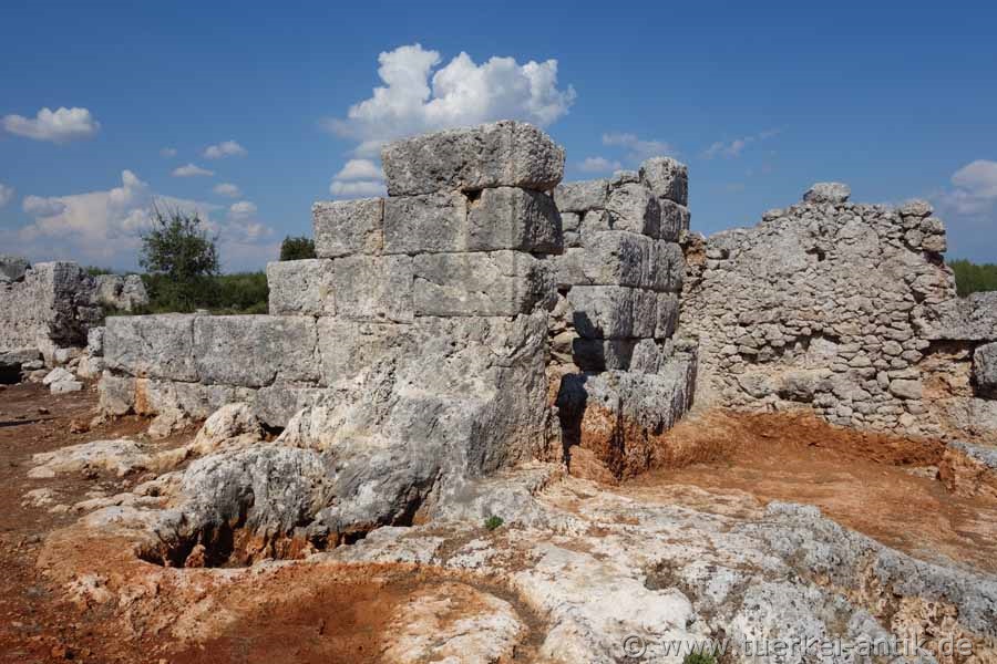 Im Nordwesten des Gebäudes befindet sich eine riesige, 19,90 x 5,40 Meter große Zisterne. Sie wurde komplett aus dem Felsen herausgearbeitet. Eine stirnseitig erhaltene Mauer sowie die seitlich erhaltene Abschlußkante zeigen, dass die Zisterne mit einem Tonnengewölbe überdacht war. Durch einen in situ erhaltenes, 2,70 x 0,50 Meter messendes Bauteil ist ersichtlich, dass sich der Zufluss in der südwestlichen Ecke befand. |