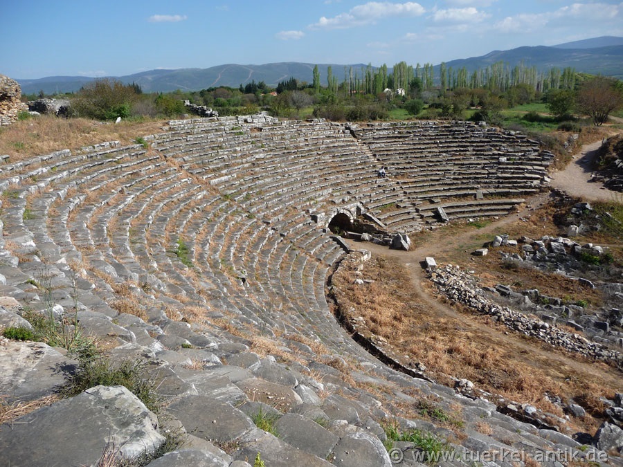 Numerous and well-preserved ruins make Aphrodisias one of the most important archaeological sites of the Eastern Mediterranean from the Greek-Roman period. The remains of the temple of Aphrodite, still visible today, date back to the 1st century B.C. (although an Aphrodite temple already existed earlier). Under Augustus and Hadrian the temple was further extended and rebuilt. In the 5th century it was transformed into a church. The victory of Christianity in late antiquity led to an ostracism of the Aphrodite cult. In late antiquity, the city was renamed Stauropolis ("City of the Cross"), but the name Caria prevailed, which eventually became the Turkish name Geyre. |