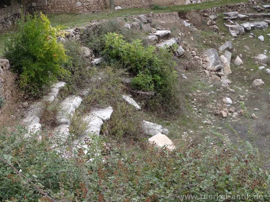 The rows of seats, often referred to as theatres, are in fact an ancient stadium. The rough outlines of the former stadium can still be seen from the air. Unfortunately, here too - as in many other places - the ancient buildings were demolished and used for the construction of new houses in the area of the ancient city. |