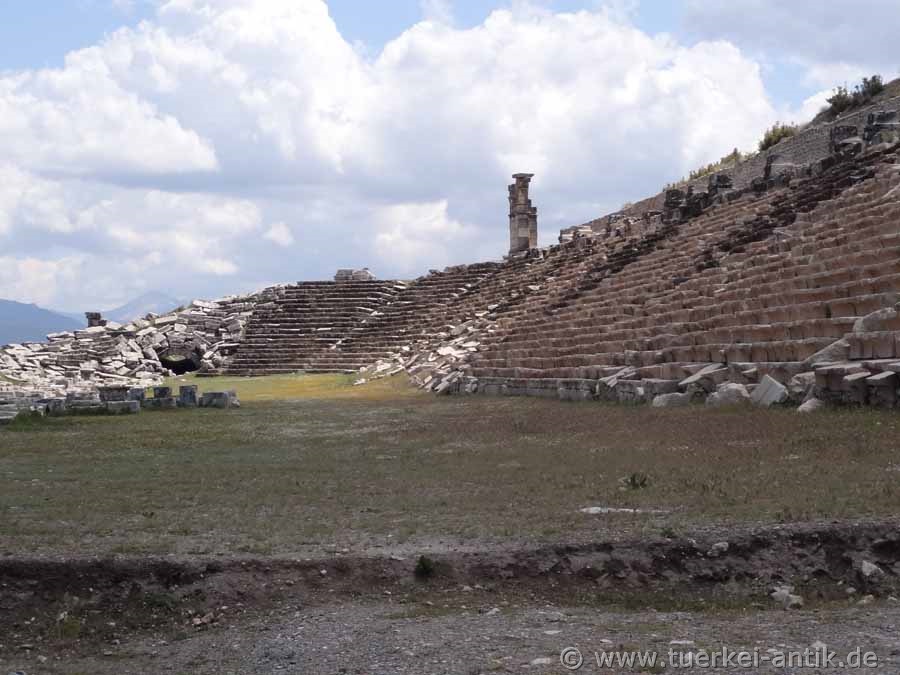 The stadium was built on a relatively narrow slope of the mountain slope. In Hellenistic times, sports such as wrestling, boxing, discus and javelin throwing as well as running competitions found a wide audience. In Roman times, bloody animal hatreds and gladiator fights were added. |