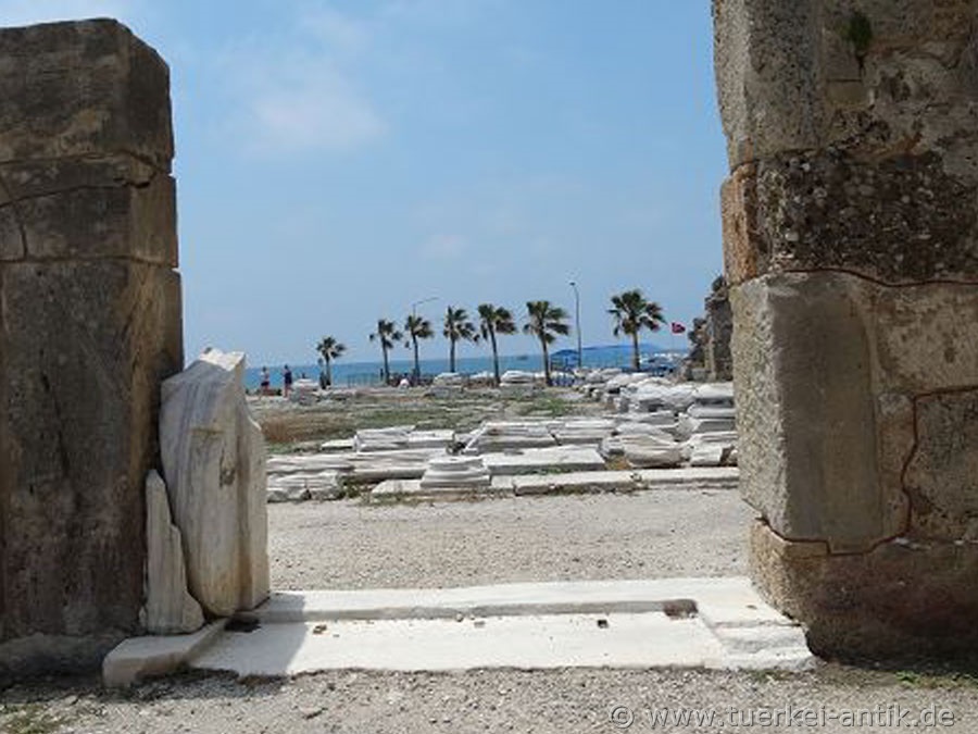 The temple of Athena, as well as the adjacent temple of Apollo, were demolished in Byzantine times. In the north of the two temples a basilica measuring 50 x 50 meters was built. The area of the temples was transformed into the atrium of the basilica. Only in recent years has the area of the temple of Athena been excavated and archaeologically examined. |