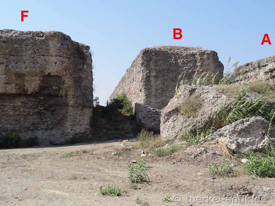 The outer walls are up to 6.60 meters thick and are made of Roman concrete, as tests at the Archaeological Faculty of the University of Istanbul have proven. |