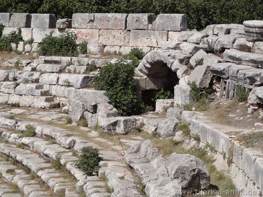 Das römische Theater von Diokaisareia wurde im Oktober 2018 vollständig ausgegraben. Es sind zwei Ränge auszumachen. Der obere Rang wurde auf einer Gewölbekonstruktion errichtet, während der untere Rang in den Hang hineingebaut wurde. Durch eine Ehreninschrift am Proskenium wird das Theater auf die Regierungszeit der römischen Kaiser Mark Aurel und Lucius Verus (161 - 169 bzw. 180 n. Chr.) datiert. |
