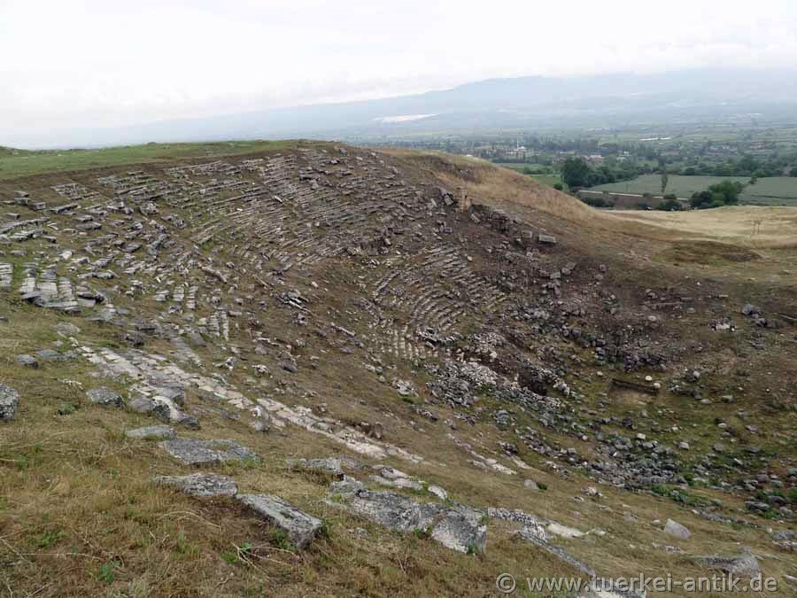 Das Nord-Theater wurde im 2. Jh. n. Chr, gebaut. Das Theater ist mit Blick nach Nordosten auf die Lykos-Ebene vollständig in den Hang gebaut.