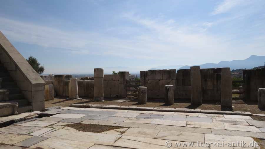Berghängen. In byzantinischer Zeit wurde etwa im 14. Jahrhundert eine neue Festung zwischen Akropolis und Stoa errichtet. Bald nach der Eroberung durch die Osmanen im 15. Jahrhundert wurde die Stadt aufgegeben, die Bewohner zogen nach Torbalı. |