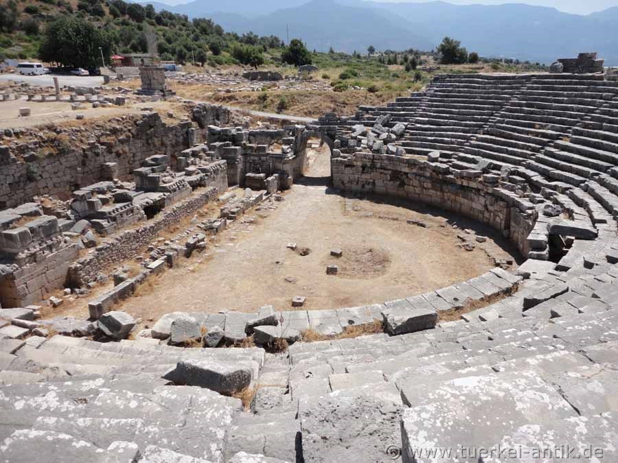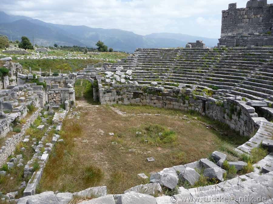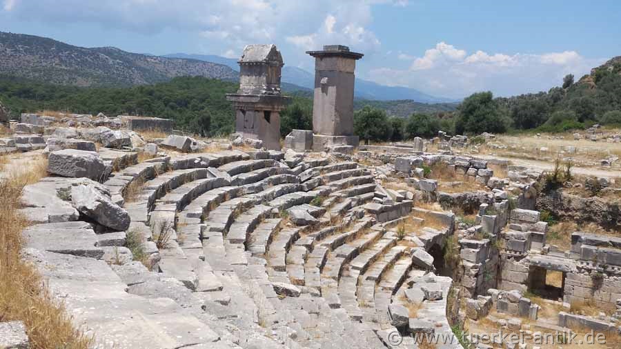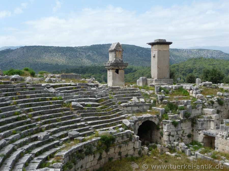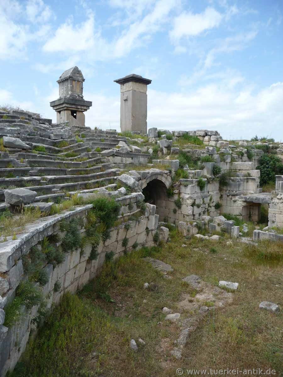 Das ursprünglich griechische Theater von Xanthos wurde im 2. Jh. v. Chr. errichtet. Nach dem verheerenden Erdbeben im Jahr 141 n. Chr. erfolgte ein Umbau zu einem römischen Theater. |