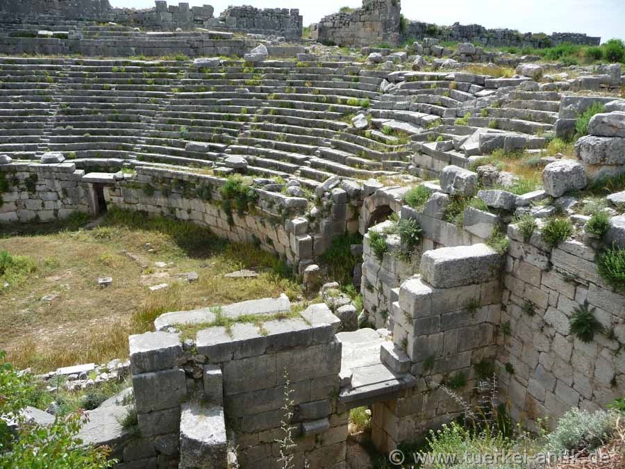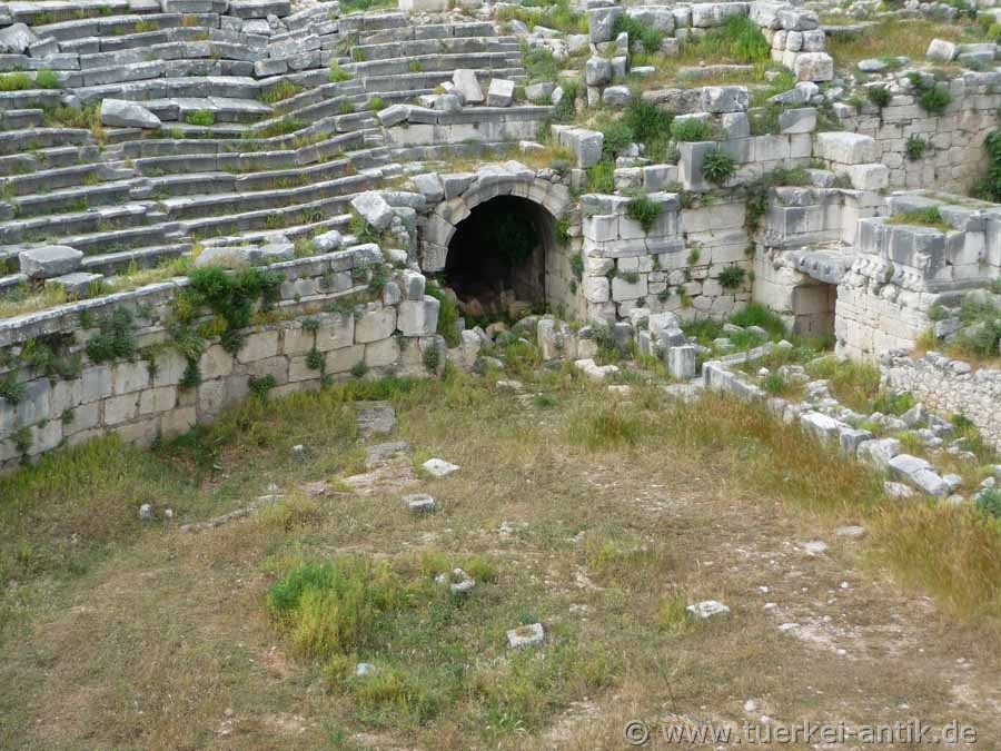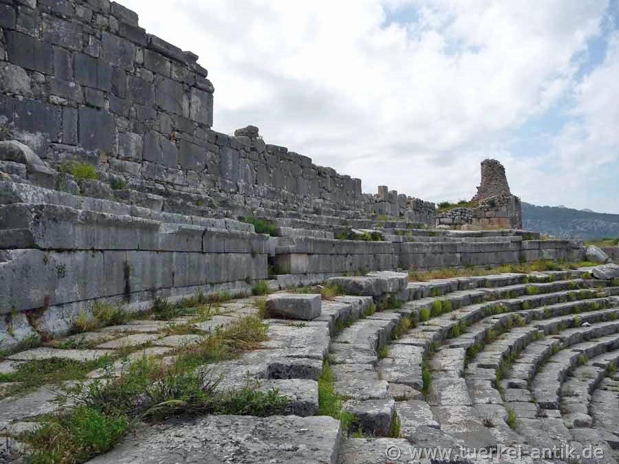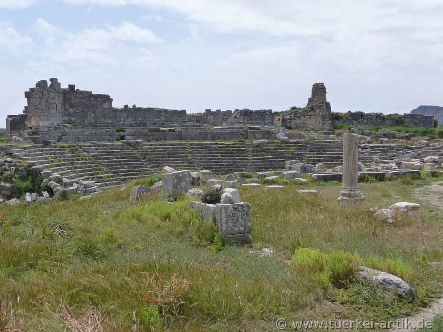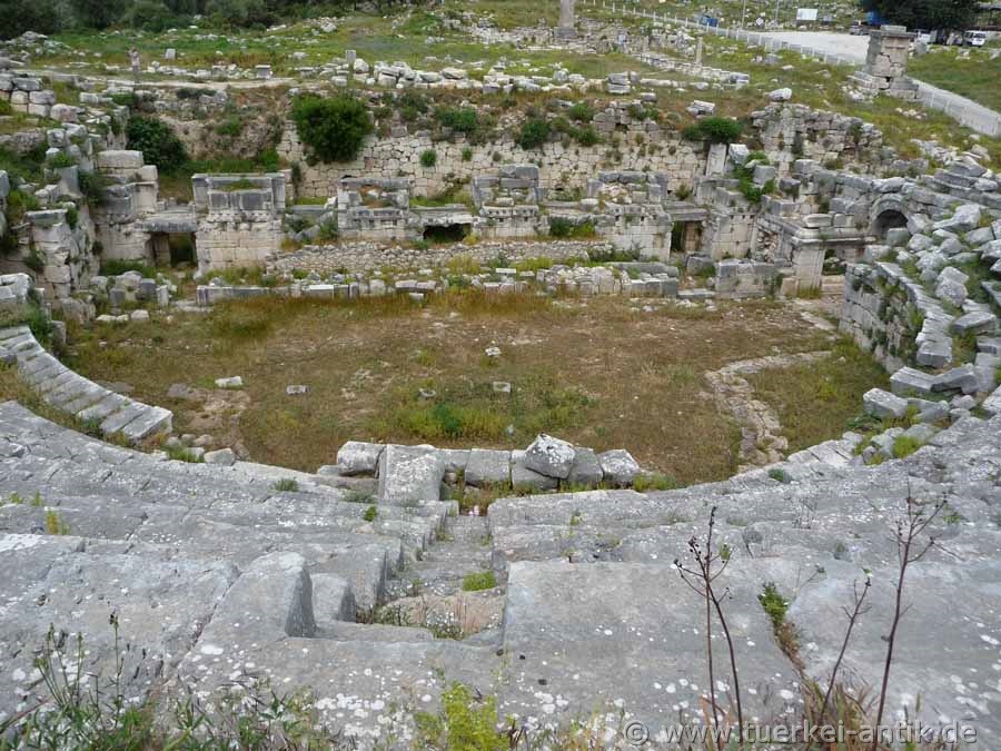 Das ursprünglich griechische Theater von Xanthos wurde im 2. Jh. v. Chr. errichtet. Nach dem verheerenden Erdbeben im Jahr 141 n. Chr. erfolgte ein Umbau zu einem römischen Theater. |