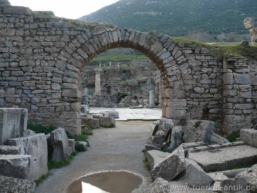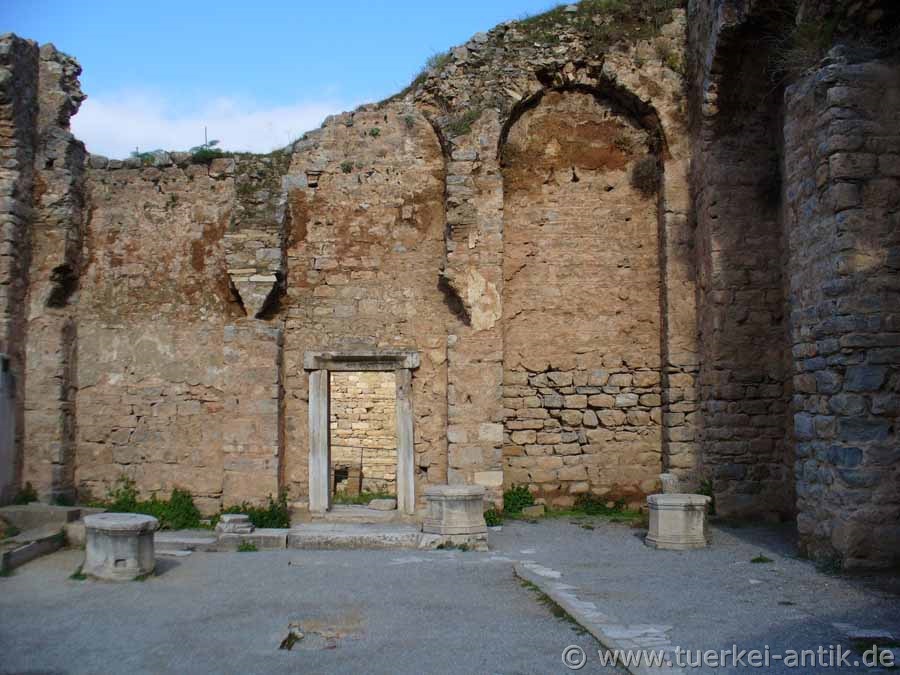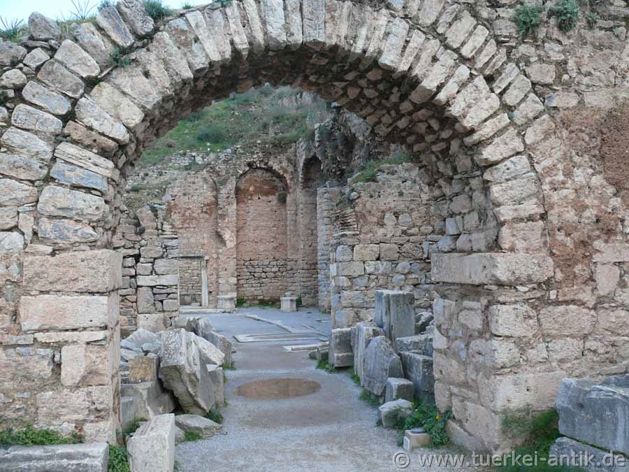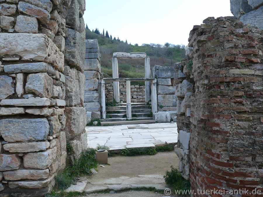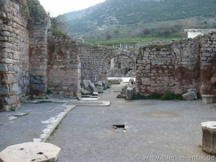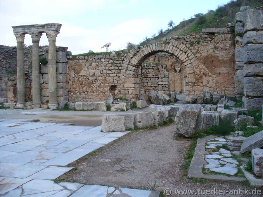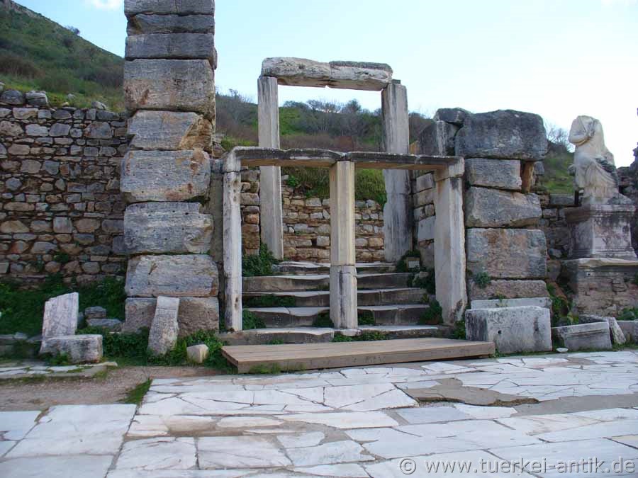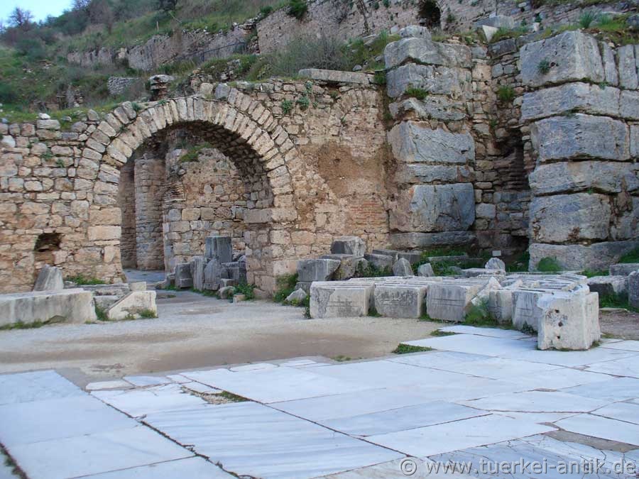 Von dem einst dreigeschossigen Bau, einem der größten von Ephesos, haben sich nur Reste des Erdgeschosses erhalten.