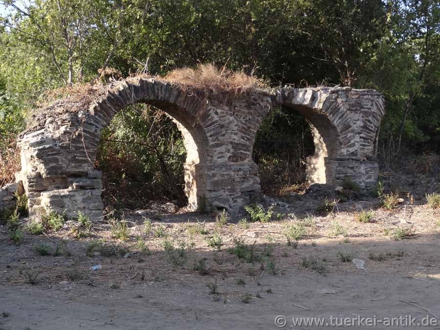Aquädukt in die Stadt führte. Von diesem Aquädukt sind einige Teilstücke, teils kaum als ein solches zu erkennen, erhalten. Diese