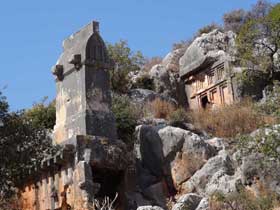 | Antike Stadt auf dem Gebiet des heutigen Ortes Üçağiz in der Provinz Antalya. | Antike Stadt beim heutigen Ort Kaleköy in der Provinz Muğla. | Antike Stadt beim heutigen Ort Kınık in der Provinz Antalya. | |||||