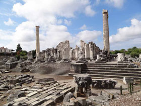 Temple of: Artemis erected: in 3 phases, last in the 2nd century A.D. Dimensions: Stylobat 94.92 x 41.87 m Peristasis: 8 x 20 |