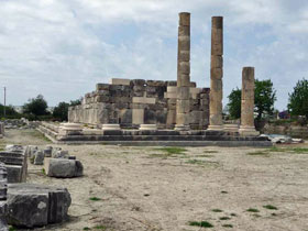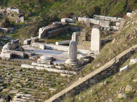 Temple of: Apollo, Artemis, Aphrodite and Imperial Cult erected: 1st century A.D. Dimensions: Stylobat 23 x 10 m (unconfirmed) Peristasis ./. |