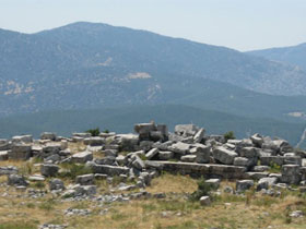 Emperor temple on the state agora erected: third quarter of the 1st century B.C. Dimensions: Stylobat 14.50 x 22.20 m Peristasis: 6 x 10 |