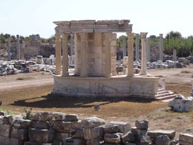 Temple of: Tyche erected: 2nd century A.D. Dimensions: Stylobat Ø 9,9 m Peristasis: 12 |
