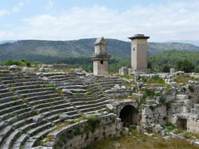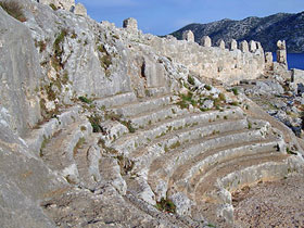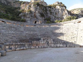 Das kleinste Theater Lykiens wurde vollständig aus dem Felsen gehauen. Fassungsvermögen: ca. 400 Zuschauer |