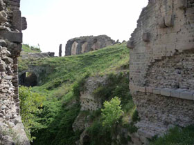 zerstörtem Bühnenhaus aus römischer Kaiserzeit. Fassungsvermögen: ca. 5.000 Zuschauer |