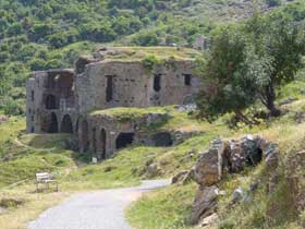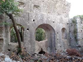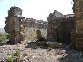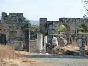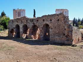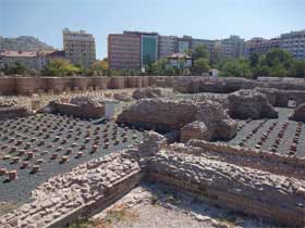 Große Thermenanlage aus dem 3. Jh. n. Chr. Wurde von einem der beiden Aquädukte bis zu dessen Zusammenbruch mit Wasser versorgt. |