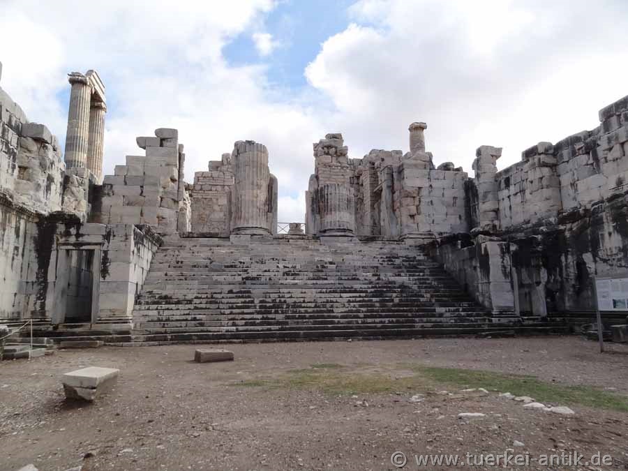 Herodotus, the father of historiography, reports that the Ionians immigrated around the turn of the 1st millennium B.C. and took over an older place of worship, where in pre-Greek times a female natural deity was venerated. However, this has not yet been verified archaeologically. According to legend, Leto gave birth to her son Apollo at the oracle site of Zeus. The legend goes on to say that Apollo later appeared to a local shepherd named Branchos and gave him the gift of vision. The Carian priesthood of the Branchids, who until the Persian Wars were the namesakes and rulers of the Shrine, traced back to these shepherds. The priests of the Shrine were later also appointed in Miletus and belonged to prestigious families of the city. The oracle probably had an international reputation as early as the 7th century BC. This is proven on the one hand by Herodotus, who reports on consecration gifts from the Egyptian Pharaoh Necho and the Lyder King Kroisos, and on the other hand by the actual discovery of numerous consecration gifts. Herodotus reports that the Persian king Darius plundered the temple and burnt it down after the fall of Miletus in 494 BC. Other sources report a destruction in 479 BC by the Persian king Xerxes. Archaeological evidence of fire destruction cannot be found for either 494 or 479 BC. The fact is, however, that no new construction measures have taken place over the next 150 years. In the last third of the 4th century BC, the previously regional sanctuary became part of the city of Miletus. Milet gave the order to build the new temple of Apollo and appointed yearly officials and sacrificial priests. The religious operation of the oracle came to a standstill in the course of the 4th century with the onset of Christianity. In late antiquity Didyma was bishop's seat and was honoured by Emperor Justinian I. with the title Iustinianopolis, before the place experienced a rapid decline in the early Middle Ages. From the 10th to the 12th century Didyma was once again the seat of a bishop. Twice, in the 7th and 15th centuries, earthquakes destroyed Didyma. The latter led to the abandonment of the settlement. It was not until the end of the 18th century that the town was resettled. The place has been explored since the 18th century. First by English, then French, finally by German archaeologists. According to this, found objects from Didyma can be found in the British Museum in London, the Louvre in Paris and the Pergamonmuseum in Berlin. |