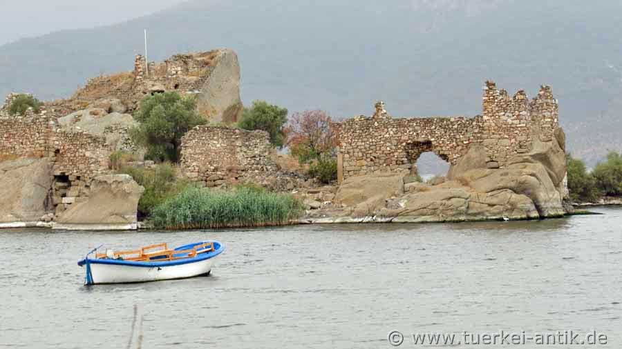 Today Herakleia lies in a former bay of the Mediterranean Sea, called Latmikos kolpos (Latmic Gulf) in ancient times, separated by sedimentation processes and transformed into fresh water. The village is situated at the foot of the Latmos Mountains, which are difficult to access. Among the remains of the ancient city stands the village Kapıkırı. According to legend, the burial cave of Endymion was near Heraklia. In ancient Heracleia the moon goddess Selene was particularly venerated. |