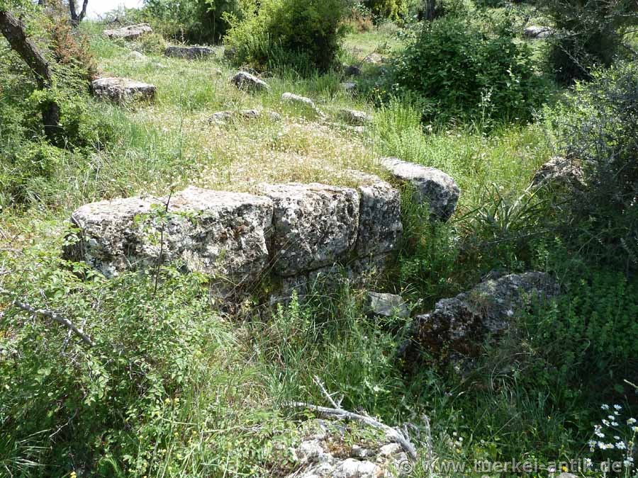 A Mycenaean dome tomb from the 13th or 12th century BC was discovered in the vicinity, apparently also containing sub-Mycenaean pottery. In another tomb a Mycenaean knife and a glass bead of Aegean style came to light. |