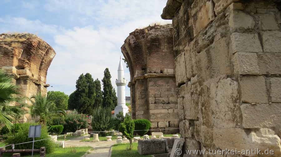 The Byzantine walls that once surrounded the city have disappeared except for a few crumbling remains on the northern outskirts. These wall fragments are, like three pillars of the St. John's Basilica built in the 6th century and some remaining remains of an ancient theatre, the only witnesses of this once rich and well-known city. |