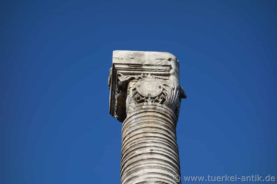 Die Säule ist 15 m hoch, gleichsam horizontal kanneliert; wird auch