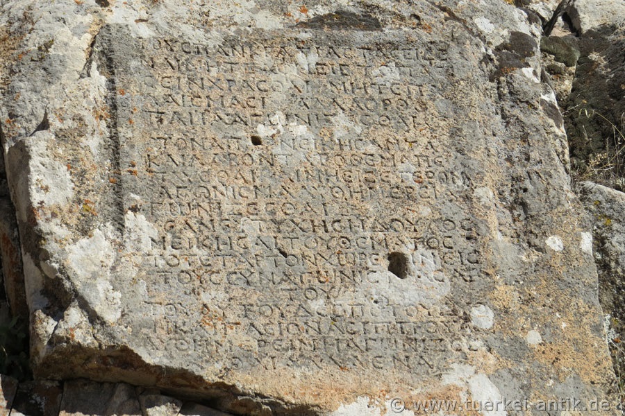 Rechts unterhalb des Grabmals befindet sich eine eingelassene Inschrift, von der Prof. Dr. Hasan Spring von der Selçuk Üniversitesi in Konya sagt, es sei ein Denkmal für den römischen Reiter Lukuyanus, der den Tod in einem frühen Alter fand.