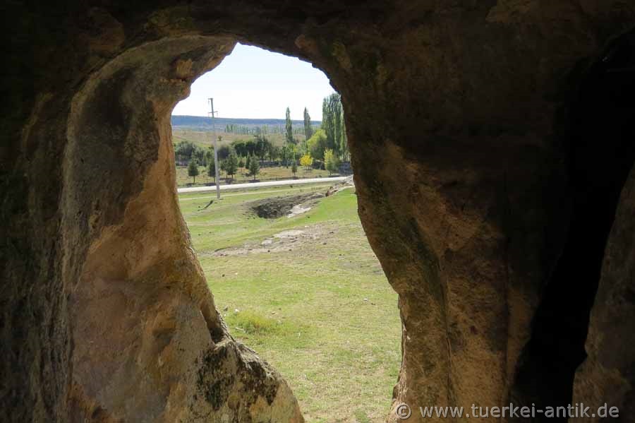 | Blick aus einer der Wohnhöhlen | |||