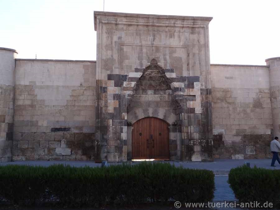 Gemäß der Inschriftentafel über dem Eingangsportal wurde der nach Westen ausgerichtete Han in den Jahren 1249 - 1250 unter Sultan Izzeddin Keykavus II erbaut.
