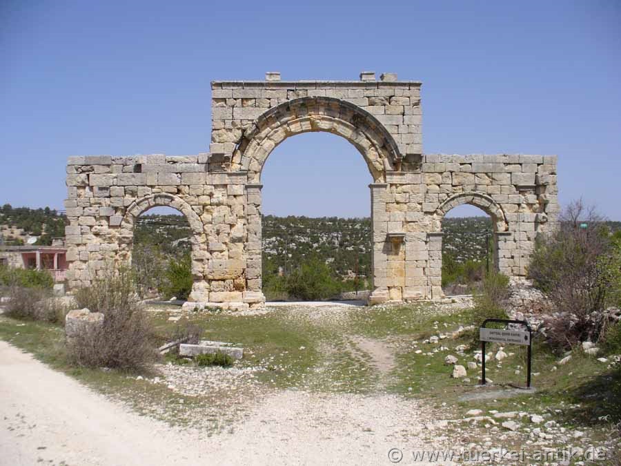 Im Nordwesten führt ein dreibogiges Tor aus römischer Zeit aus der Stadt hinaus.