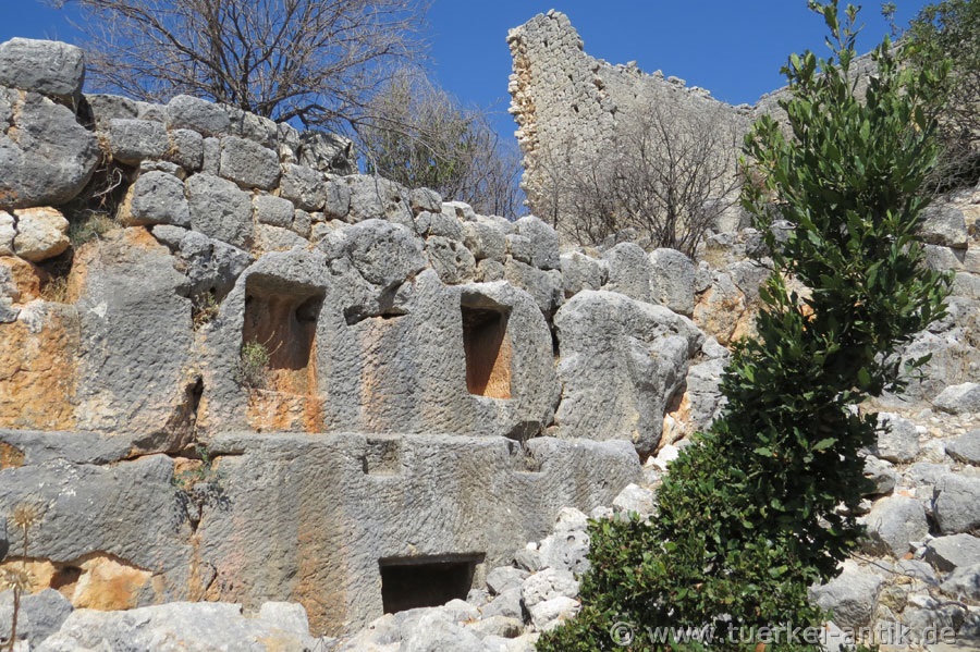 Wehrmauer an, ebenfalls aus hellenistischer Zeit, die
