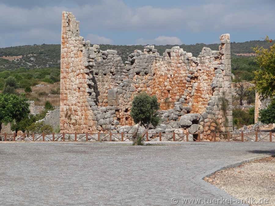 Südwand ist völlig weggebrochen. Im Westen ist der Basilika ein