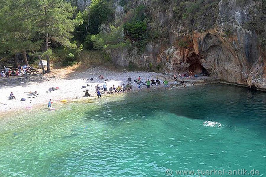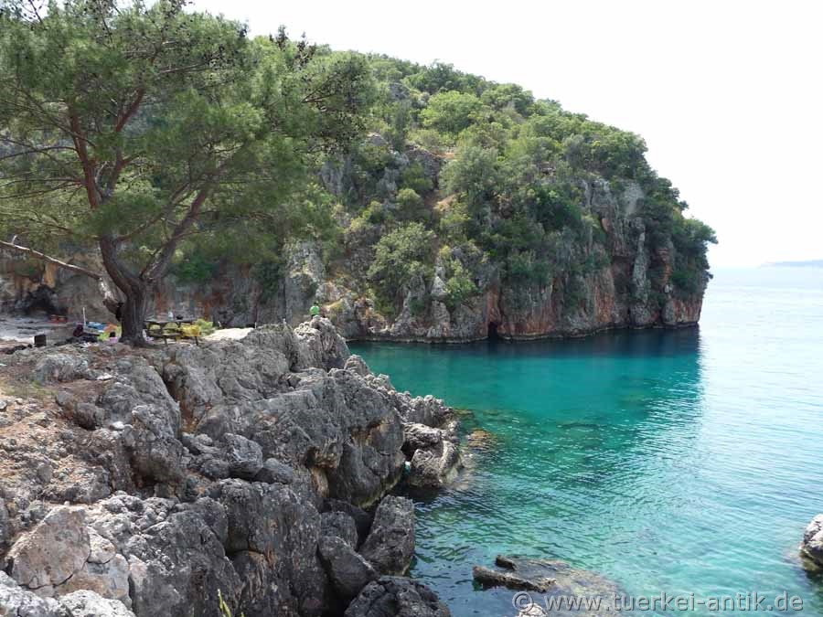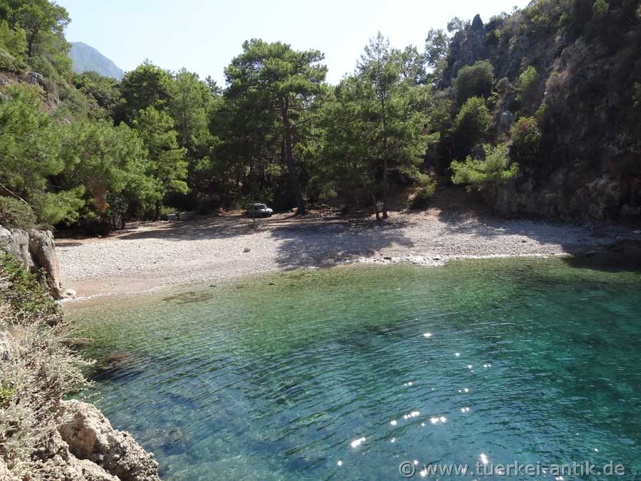 Melanippe liegt etwas abseits, ist aber leicht zu finden. Auf der Nationalstraße D400 aus Richtung Antalya kommend, biegen Sie an einer der beiden Abfahrten nach Adrasan ab und folgen der Beschilderung nach Yeşilköy, von dort aus nach Karaöz. Von Karaöz aus ist der Weg nach Melanippe mit den üblichen braunen Schildern ausgeschildert.