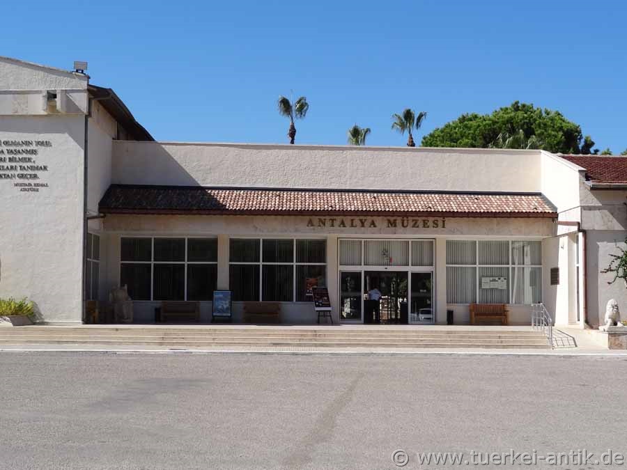 Während der Besatzungszeit am Ende des ersten Weltkrieges begannen italienische Archäologen, archäologische Artefakte aus Antalya und der Umgebung zu entfernen und nach Italien zu schaffen. Im Jahr 1919 ließ sich Süleyman Fikri Bey, Berater des Sultans, vom Amt des Provinzgouverneurs zum Kurator für Antiquitäten ernennen und gründete das erste Museum und erschwerte damit den Raub der antiken Gegenstände. Das Museum befand 1922 sich zunächst in der Alâeddin-Moschee, ab 1937 in der Yivli-Minare-Moschee. 1972 konnte dann das heutige Gebäude bezogen werden. 1982 wurde es wegen zahlreicher Umbauten und Restaurierungen für Besucher geschlossen. Im April 1985 wurde es nach umfangreichen Modernisierungs- und Restaurierungsarbeiten und einer zeitgerechten Präsentation der Exponate der Öffentlichkeit zugänglich gemacht. |