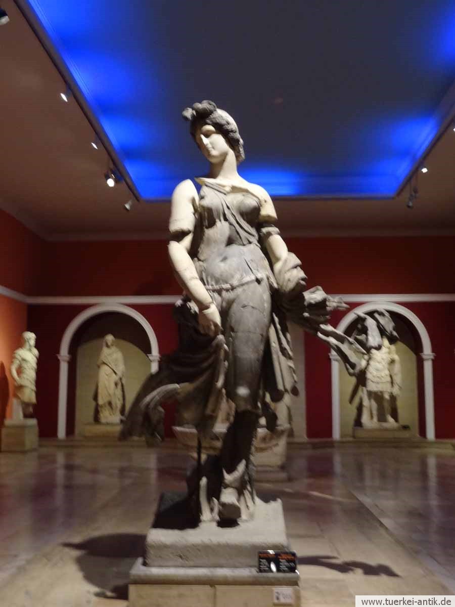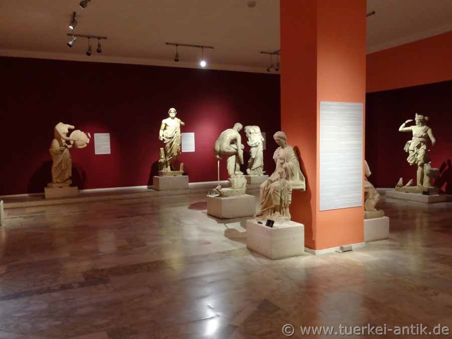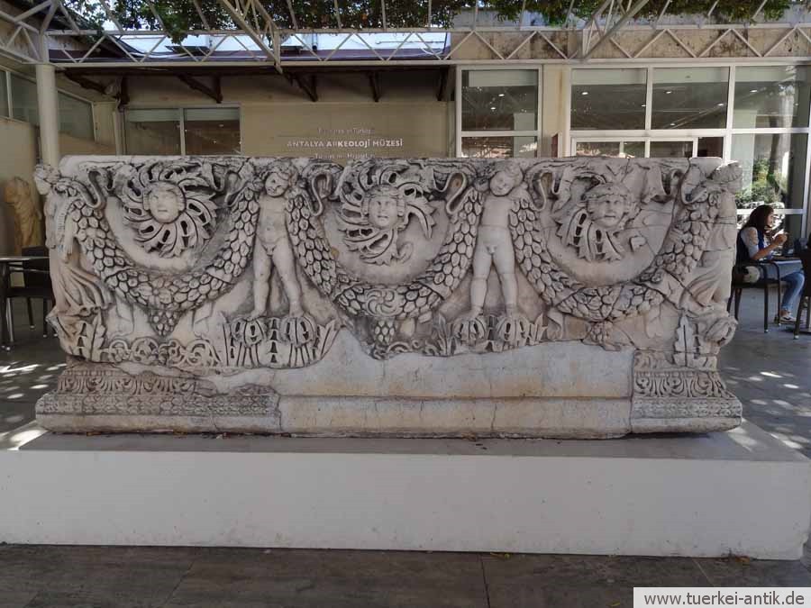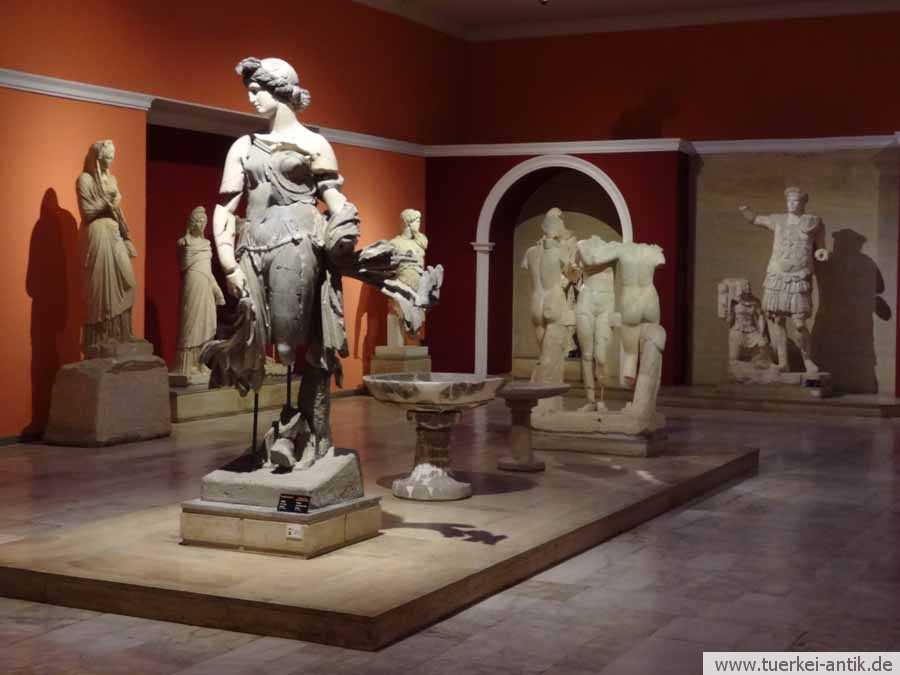 Das archäologische Museum in Antalya ist eines der größten und bedeutendsten Museen der Türkei. Es wurde 1988 mit dem Sonderpreis des Europäischen Rates ausgezeichnet. Auf einer Fläche von 7.000 m2 werden ca. 5.000 herausragende Ausstellungsstücke aus hellenistischer, römischer, byzantinischen, seldschukischer und osmanischer Zeit gezeigt. Es umfasst 13 Räume sowie einen großzügig angelegten Museumsgarten mit steinernen Zeugen aus der Geschichte Pamphyliens und Lykiens. Darüber hinaus sind weitere 25.000 bis 30.000 Artefakte eingelagert, die nicht angezeigt werden können. |