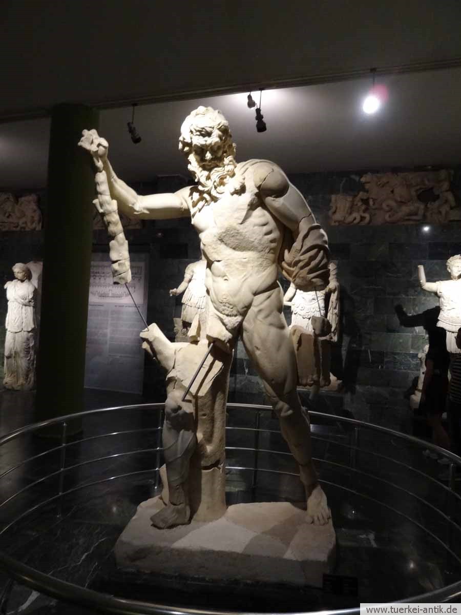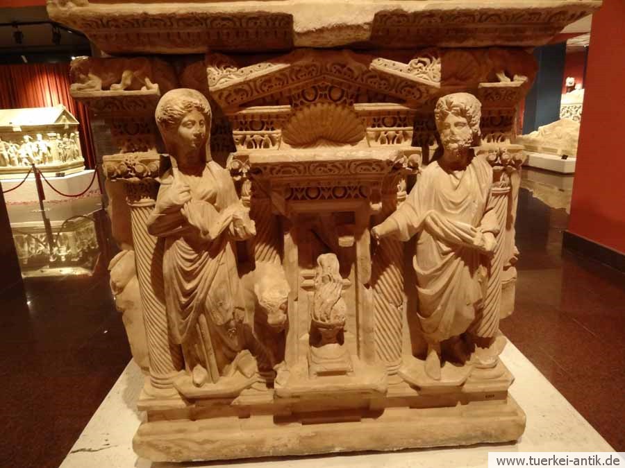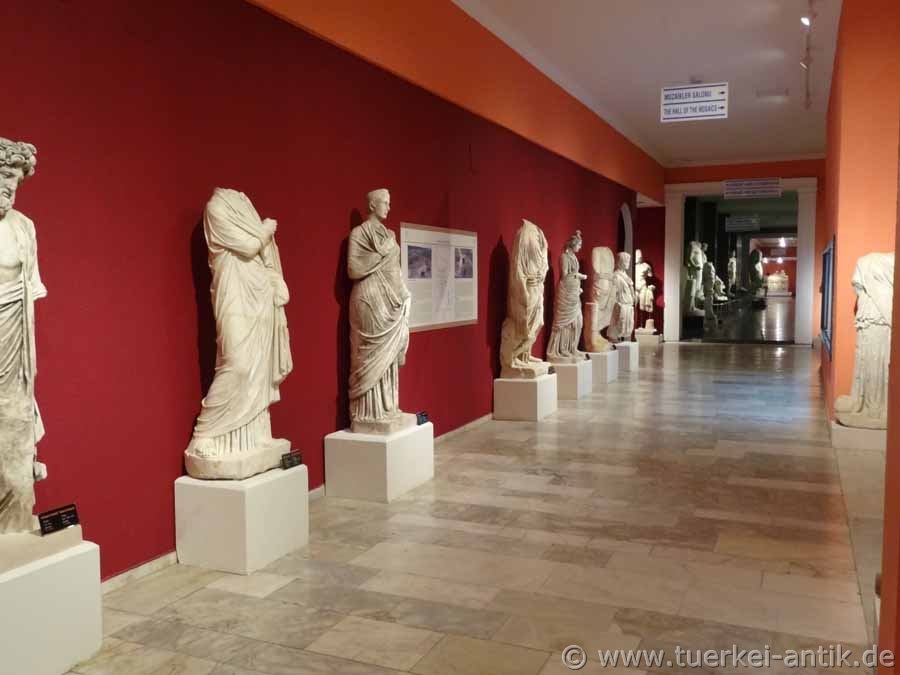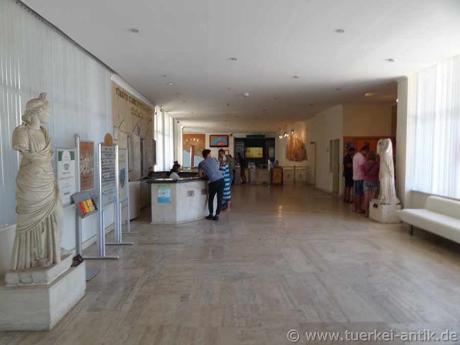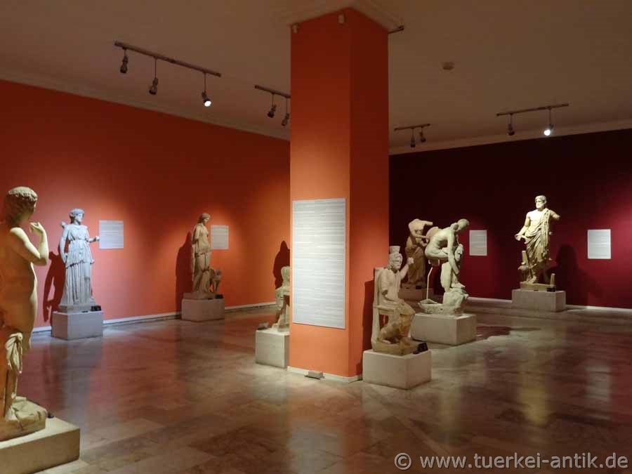 Das archäologische Museum in Antalya ist eines der größten und bedeutendsten Museen der Türkei. Es wurde 1988 mit dem Sonderpreis des Europäischen Rates ausgezeichnet. Auf einer Fläche von 7.000 m2 werden ca. 5.000 herausragende Ausstellungsstücke aus hellenistischer, römischer, byzantinischen, seldschukischer und osmanischer Zeit gezeigt. Es umfasst 13 Räume sowie einen großzügig angelegten Museumsgarten mit steinernen Zeugen aus der Geschichte Pamphyliens und Lykiens. Darüber hinaus sind weitere 25.000 bis 30.000 Artefakte eingelagert, die nicht angezeigt werden können. |