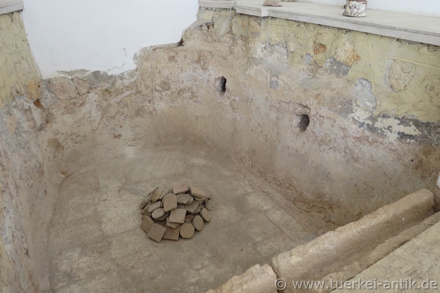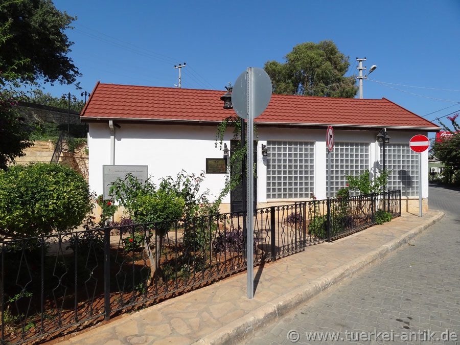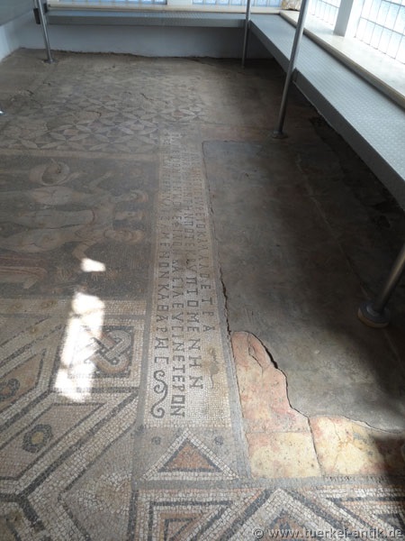 "Wenn du fragst, oh Gastfreund, wer das schöne Badewasser fand, indem er die Quelle wiederentdeckte die bis dahin versteckt war, so wisse nun, dass es Poimenios war, der Gefährte des Kaisers, mit dem er befreundet war, und die heiligen Inseln treulich verwaltete."
