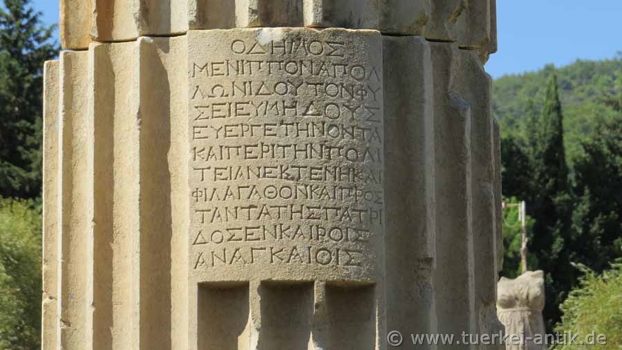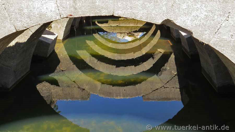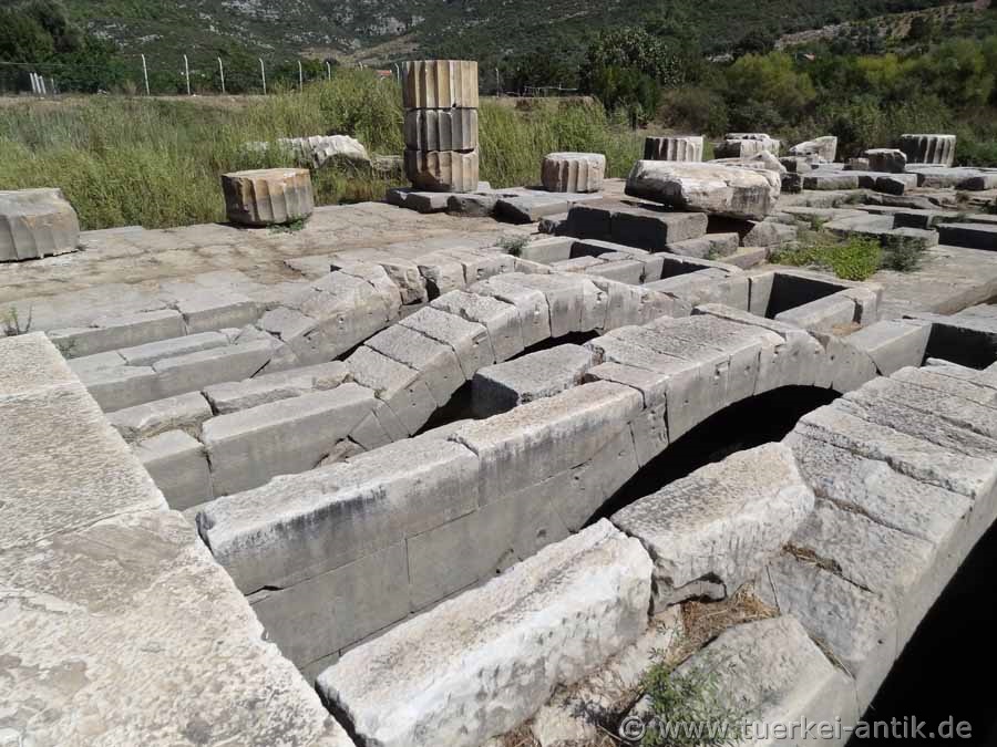 Wenn Sie das Orakelheiligtum Claros besichtigen wollen empfiehlt es sich, es im Herbst aufzusuchen. Im Frühjahr steht das Grundwasser derart hoch, dass der Tempel und das umliegende Gelände bis zu 2 Meter hoch unter Wasser steht. |