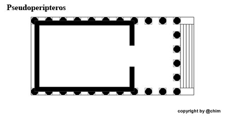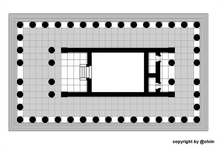 Tempels ist die Cella von einem durch einen Säulenkranz (Peristasis)