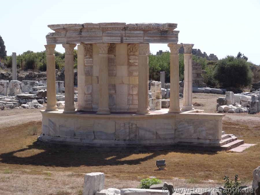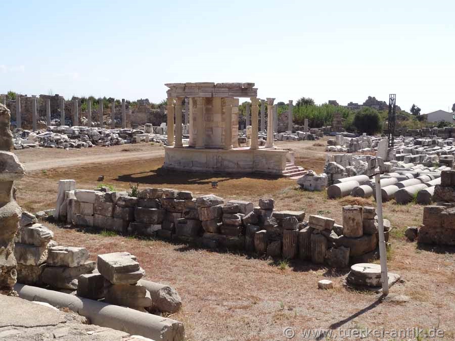 The Temple of the Tyche on the Handelsagora, once surrounded by porticoes, directly below the ancient theatre, was reconstructed in 2011/2012 using original components and completed in 2012. The considerable reconstruction costs of almost one million lira were raised by sponsors. |