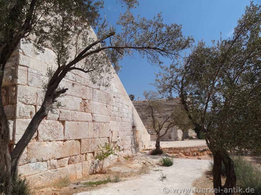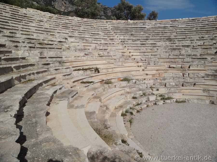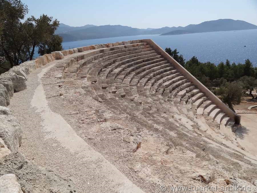 The Hellenistic theatre from the early 1st century BC was built on a slope by the sea. The once surely wooden stage house has not been preserved. The cavea, open to the sea, holds 26 rows of seats. |